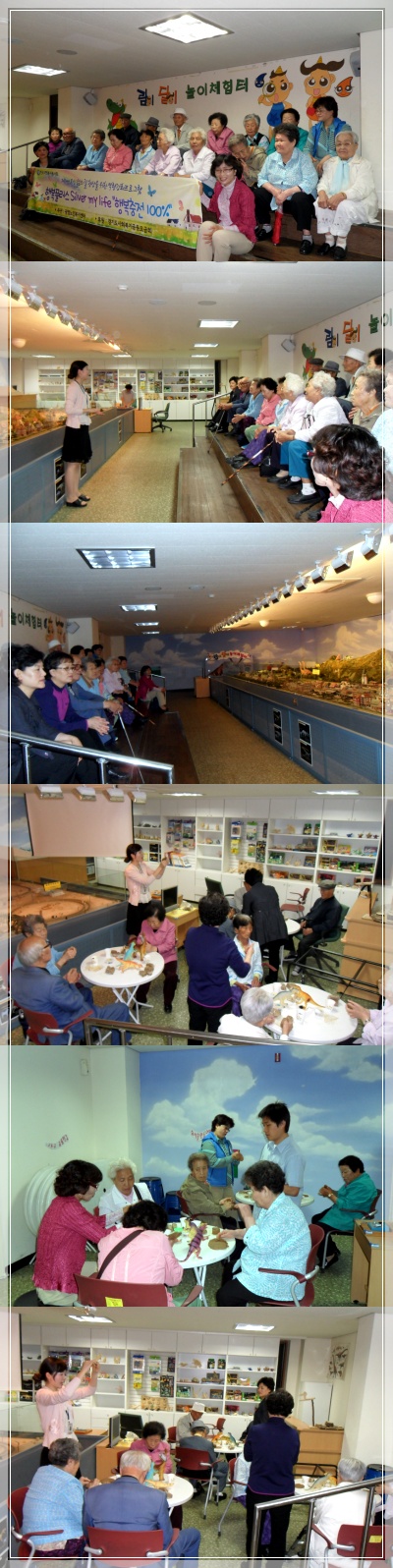 5월마지막날 재가어르신 문화체험"행복충전100%"를 진행했습니다. 철도디오라마를 관람하면서 작은기차가 움직이는것에 신기해하시고,, 찰흙으로 조물락조물락 공룡, 떡.. 색을 넣어 알록달록 꾸미시는 모습이 어릴적 동심으로 돌아간듯 즐거워했습니다.