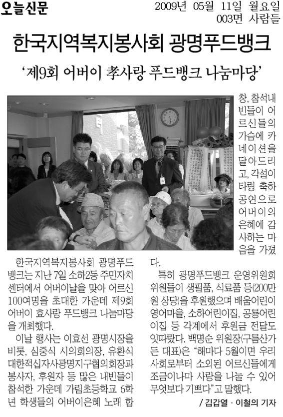 2009 어버이날 기념" 제9회 어버이 효사랑 푸드뱅크 나눔마당" 페이지 정보 작성자 최고관리자 댓글 0건 조회 6,289회 작성일 09-05-11 00:00 본문 2009 어버이날 기념" 제9회 어버이 효사랑 푸드뱅크 나눔마당" 목록 이전글광명푸드마켓 개소식1 09.06.10 다음글2009어버이날 기념 "만수무강 효잔치" 성료 09.05.11