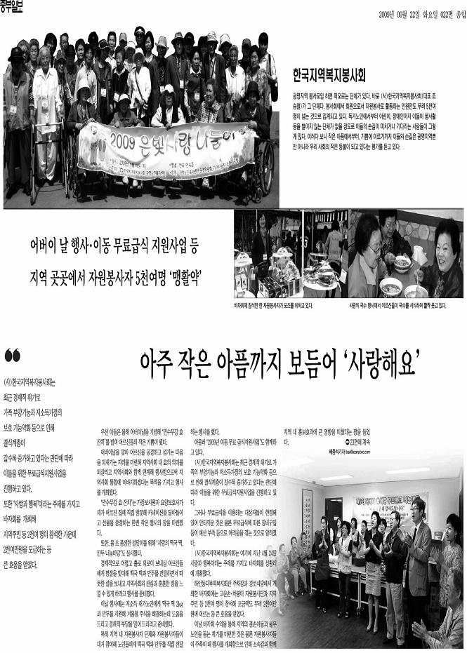 사랑나눔을 실천하는 한국지역복지봉사회 페이지 정보 작성자 최고관리자 댓글 0건 조회 7,401회 작성일 09-09-23 00:00 본문 사랑나눔을 실천하는 한국지역복지봉사회 목록 이전글봉사는 동정아닌 아픔고통을 함께 나누는 것 09.09.23 다음글사랑나눔을 실천하는 한국지역복지봉사회 09.09.23
