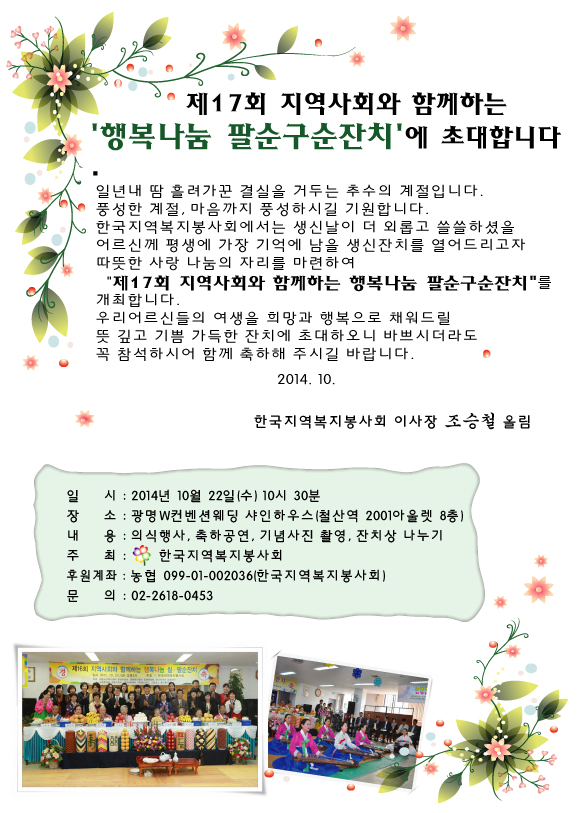 지역의 저소득 독거어르신들과 함께하는 제17회 "행복나눔 팔순구순잔치"를 축하하여 주세요
